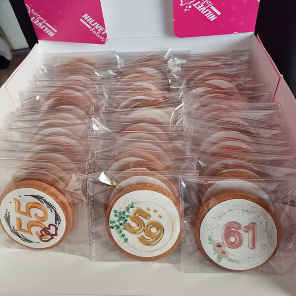 Ja sigui per a regals, esdeveniments especials o simplement per a gaudir-les tu mateix, les nostres galetes personalitzades són una forma creativa i saborosa d’expressar les teves idees i emocions. Pots triar entre una varietat de dissenys, des de noms i dates importants fins a logotips i temàtiques especials.